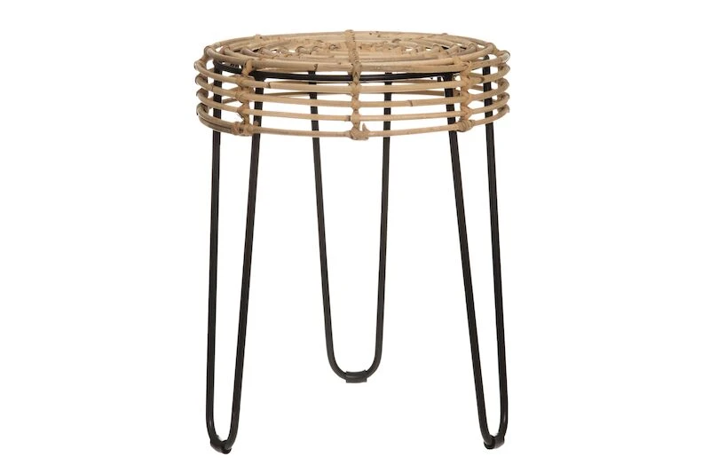Ajaton kevytrakenteinen rottinkijakkara on valmistettu aidosta luonnonvÀrisestÀ rottingista. Rottinki on ekologinen luonnonmateriaali ja sen ominaisuuksiin kuuluu vÀrivaihtelut ja tummemmat kohdat. VÀrivaihtelut, epÀtasaisuudet ja kÀsityön jÀlki tekevÀt jokaisesta rottinkituotteesta yksilöllisen. Rottinki patinoituu ajan saatossa. Rottinkijakkara sopii sisÀkÀyttöön, sekÀ katettuun ulkotilaan. Kevytrakenteisessa jakkarassa on mustaksi maalatut metallijalat.