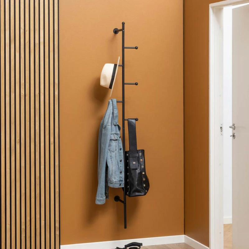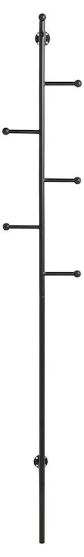 Tyylikäs mattamusta Aspen seinänaulakko on hyvä vaihtoehto pieneen tilaan. Naulakko kiinnitetään seinään, jolloin se ei vie lattiatilaa. Pystysuorassa tangossa on viisi koukkua takeille ja laukuille. Suorat linjat ja mattamusta väri tuovat modernin ilmeen.