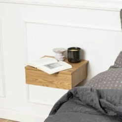 Minimalistinen ja tyylikäs Avignon yöpöytä 1-laatikolla. Yöpöytä kiinnitetään suoraan seinään, jolloin se ei vie lattiatilaa. Laatikko liukuu sulavasti metallikiskon ansiosta. Materiaali on maalattua MDF:ää.