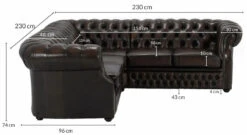 Chesterfield kulmasohva on laadukasta käsityötä. Sohvassa on hienoja yksityiskohtia, kuten antiikkiniitit ja se on kauttaaltaan verhoiltu aidolla, antiikkivärjätyllä nahalla. Sohva on todella tukeva istua ja se sopii hyvin sekä kotiin että yleisiin tiloihin.