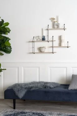 House Nordic Harlem seinähyllyyn saat koriste-esineesi kauniisti esille. Se on ilmeeltään todella kevyt, joten se sopii erinomaisesti pieneenkin tilaan. Hyllyssä on musta metallikehys ja puiset porrastetut hyllyt.