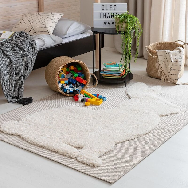 Jänö lastenmatto on helppohoitoinen ja pölyämätön matto lastenhuoneeseen. Jänön kuva on pehmeää nukkaa, joka on koholla. Matto on muuten sileäksi kudottua polypropeenia. Neutraali värimaailma rauhoittaa lastenhuoneen tunnelmaa. Maton paksuus noin 1 cm ja Jänö kuvioinnin nukan pituus on noin 2 cm, joten maton kokonaispaksuus Jänö kuvioinnin kohdalta on noin 3 cm.
