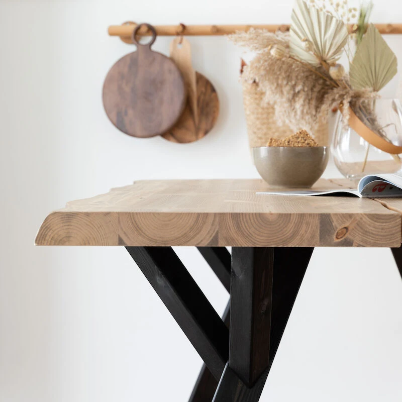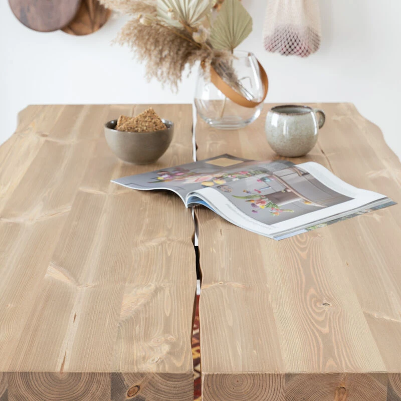 Lana-pöytä on rustiikki-tyyppinen ruokapöytä ja pöydässä käytettävä lankku on oksaista mäntyä, jossa sallitaan luonnollisia halkeamia, oksanreikiä, pihkasta ja puunytimestä syntyneitä uria ja epätasaisuuksia. Lana-pöydän lankkua on ”vanhennettu” koneellisesti harjaamalla, tekemällä pinnasta epätasainen rustiikkityyppinen lankku ja harjauksella puun pehmeämmät osat (pihkan ja puunydin paikat) poistuvat lankun pinnasta. Lana-pöydässä rustiikkisuus saa ja pitääkin näkyä – tämä on ihan luonnollista. Puun eläminen aiheuttaa siis muodon muutoksia ja se saattaa aiheuttaa puuhun halkeamia. Pienet hiushalkeamat ovat mänty kannelle tyypillisiä, eivätkä ne heikennä kantta eivätkä vaikuta sen käyttöikään tai kestävyyteen. Puussa oleva pihkan määrä, puunydin ja erilainen puun vahvuus -ja koostumus eri lankuissa voi aiheuttaa pöydän kannen sävyssä värieroja ja kuvioeroja – tämä on luonnollista. Tyypillisesti halkeamat saattaa esiintyä talvella, mutta kesällä se painuu kiinni puun turvotessa. Myöskin värinmuutos ajan saatossa on luonnollinen ominaisuus puukalusteille.