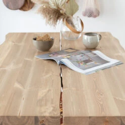 Kaunis Lana pöytä on valmistettu kestävästä ja ekologisesta männystä. Kansi on tehty kahdesta liimapuulankusta, jonka liimauksessa on käytetty vedenkestävää liimaa. Jalat ovat mäntyä. Kannessa näkyy kauniisti puun syyt ja kuviointi, joten pinta ei ole tasainen. Pöydän kaunis pinta valmistetaan erikoisharjaamalla, jonka tarkoituksena on korostaa puun luonnollisia ominaisuuksia.