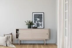 Laadukas ja tyylikkäästi muotoiltu Dawsone senkki. Materiaali viilutettua kalustelevyä ja tammea. Senkin leveys on 150 cm, kahdella liukuovella oleva senkki, joka tarjoaa runsaasi säilytystilaa. Korkeat, viistomaiset jalat keventävät ilmettä. Kantavuus 10kg/hylly.