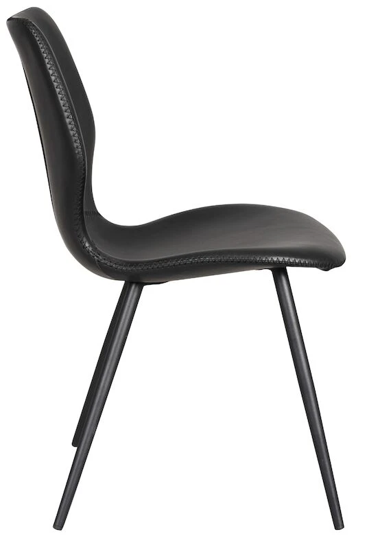NÀyttÀvÀ, kauniisti muotoiltu Rowico Highrock tuoli. Istuinosa on verhoiltu PU nahalla ja nÀyttÀvillÀ ompeleilla. Tuolin jalat on jauhemaalattu mustaksi. Metallijalat tekevÀt tuolista jÀmÀkÀn ja ilmavan nÀköisen.Tuoli sopii hyvin ruokapöydÀn ympÀrille tai vaikka yksittÀisenÀ tuolina makuuhuoneeseen.