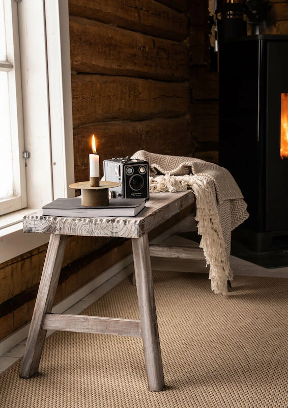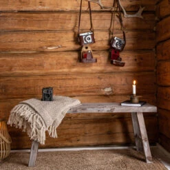 Rustiikki-penkki on rustiikki-tyyppinen penkki ja kansi on aitoa tammea, jossa näkyy puun eletty elämä ja oksat. Tammi on pintarakenteeltaan karkea ja rouhea. Puun eläminen aiheuttaa siis muodon muutoksia ja se saattaa aiheuttaa puuhun koloja, eteenkin oksakohdissa, sävyeroja, syykuviointi eroja sekä pieniä halkeamia. Rustiikki-penkissä rustiikkisuus saa ja pitääkin näkyä – tämä on ihan luonnollista. Pienet hiushalkeamat ovat kannelle tyypillisiä, eivätkä ne heikennä kantta eivätkä vaikuta sen käyttöikään tai kestävyyteen. Nämä ovat puulle ominaisia piirteitä. Tammi on erittäin kova ja kestävä materiaali. Tämä tarkoittaa sitä, että se on myös tiheää, joka aiheuttaa erityisesti puun elämistä ilman kosteuden mukaan. Talvella lämmitetyssä huoneilmassa puu kuivuu ja kutistuu. Kesällä taas puu imee itseensä kosteutta ja puu turpoaa – tämäkin on puun luonnollinen ominaisuus. Puuosat pintakäsitellään 3 kertaa vesiohenteisella mattalakalla.