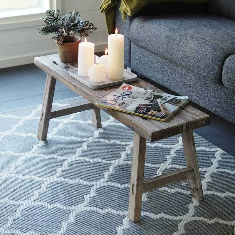 Todella tukeva harmaansävyinen penkki, joka on valmistettu Japanin puusta. Sopii monenlaiseen sisustukseen, sohvapöydäksi, ulos ja on erinomainen myös näyteikkunalla. Valkovahattu pinta ei ole arka kosteudelle. Valmistettu käsityönä, tästä johtuen mitoissa voi olla pieniä eroavaisuuksia.
