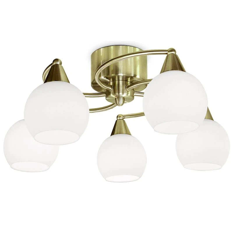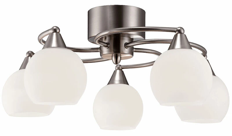 TyylikÀs ja ajaton viisiosainen Iris plafondi. Valaisimessa on kauniit lasiset kuvut ja metallinen runko. Kattoon tulevan kotelon halkaisija on 11 cm ja korkeus 6 cm. Valaisimessa on koukkukiinnitys, valaisinpistotulppa sisÀltyy toimitukseen mukaan. Lasikuvun halkaisija on 11cm.