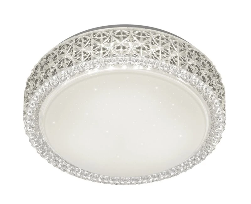 Tyylikäs Trio Pegasus LED plafondi on valmistettu akryylista, metallista ja lasista. Plafondissa on koristeellinen reunus ja valkoinen kupu, jossa on kaunis tähtiefekti. Näyttävä ja hyvin valaiseva yleisvalaisin moneen kodin tilaan.